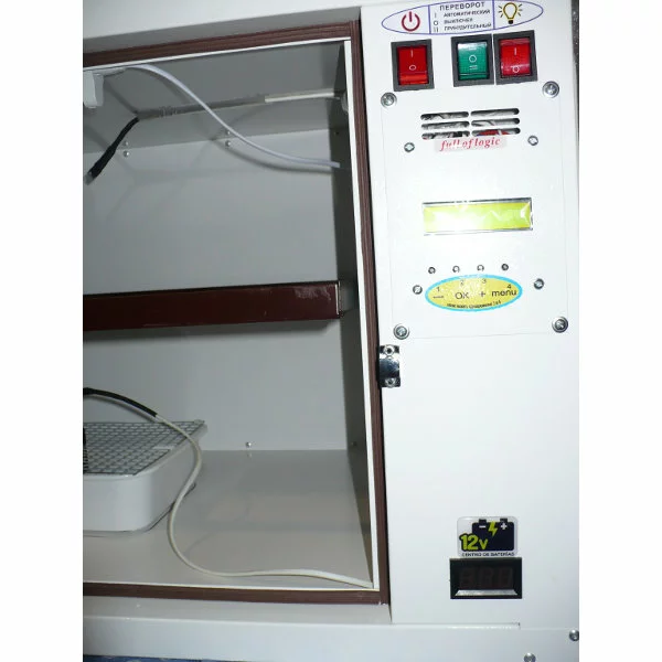 Инкубаторы Бест оснащены дополнительным отдельным цифровым который отображает заряд самой батареи. В комплекте идет шнур переходник под 12В. Инкубатор под управлением системой ICS автоматически переходит на 12В при отключении питания 220В и обратно с 12В на 220В. Инкубатор может одновременно быть включен в сеть и подключен АКБ. При разряде АКБ инкубатор так же сигнализирует уровнем контрастности самого дисплея а так же информацией на втором дисплее