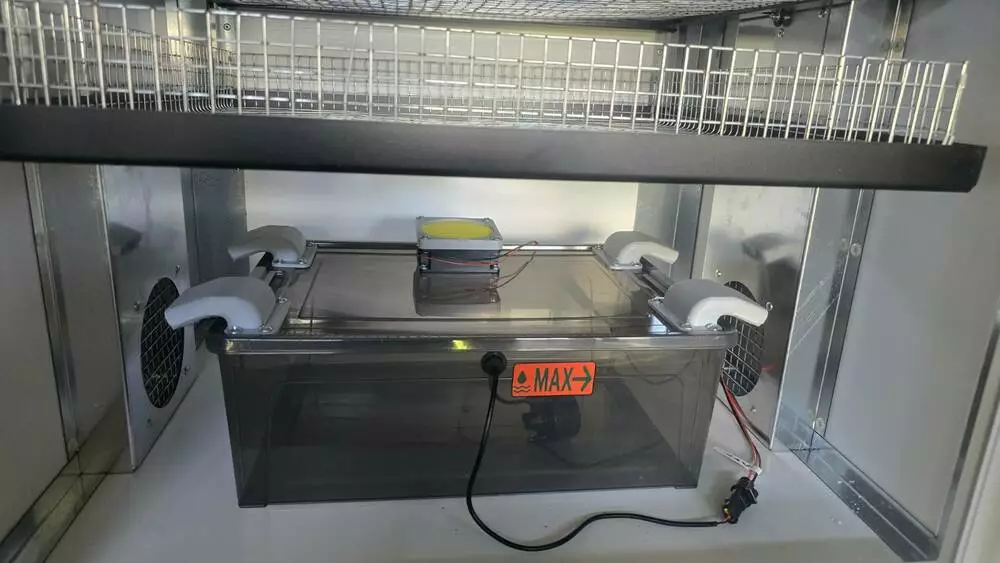 В данному випадку немає ніяких водяних тенів. Споживання інкубатора стає менше а також при відключенні світла вологість повністю підтримується за допомогою АКБ